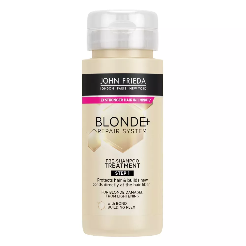 Osiągnij swój najlepszy blond bez kompromisów dzięki kuracji John Frieda Blonde+ Repair System. Ta innowacyjna kuracja przed szamponem jest pierwszym krokiem w 3-stopniowym systemie Blonde+ Repair, który wzmacnia włosy i w ciągu zaledwie minuty widocznie naprawia uszkodzenia spowodowane farbowaniem, rozjaśnianiem i stylizacją na gorąco.