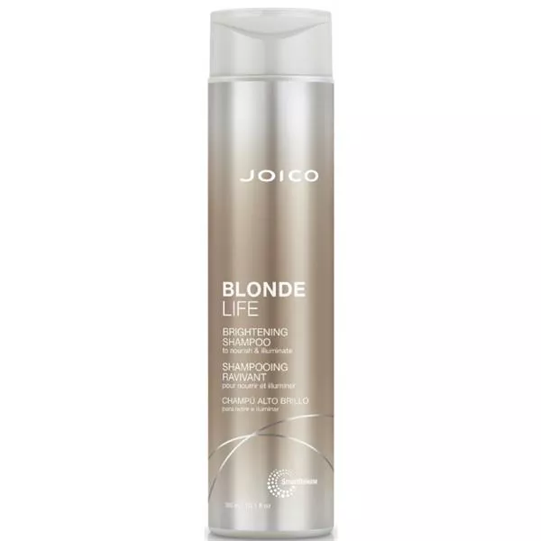 Joico Blonde Life Brightening Shampoo delikatnie myje jasne, piękne blondy. Bogate w składniki odżywcze oleje Tamanu i Monoi pomagają przywrócić siłę i miękkość.