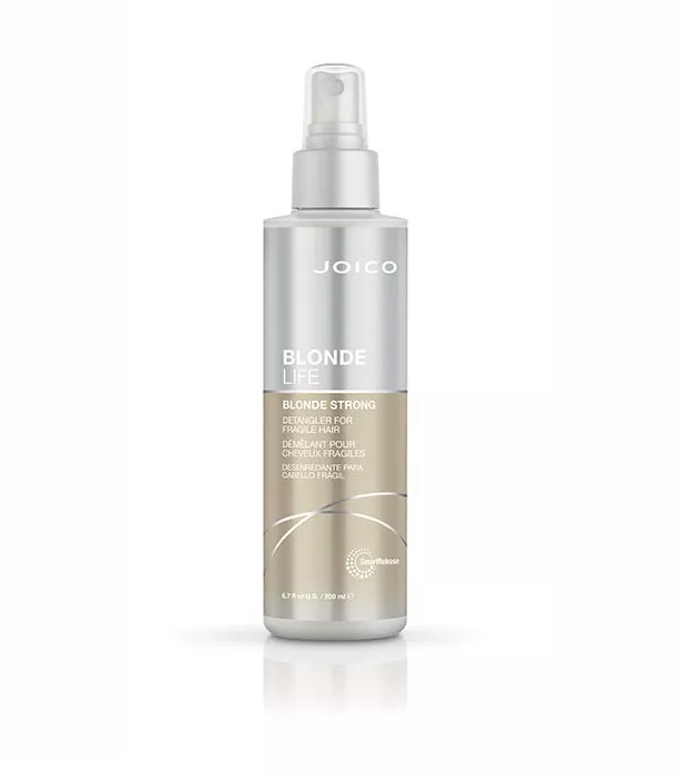 Joico Blonde Life, odżywka regenerująca w sprayu przeznaczona dla blondynek, które mają delikatne włosy i obawiają się łamliwości na skutek rozjaśniania i szczotkowania. Pomaga w rozczesywaniu delikatnych i zniszczonych pasm. Pomaga zapobiegać i naprawiać rozdwajające się końcówki. Włosy pozostają głęboko nawilżone, miękkie i błyszczące. Wzmacnia włosy, czyniąc je odpornymi na złamania.