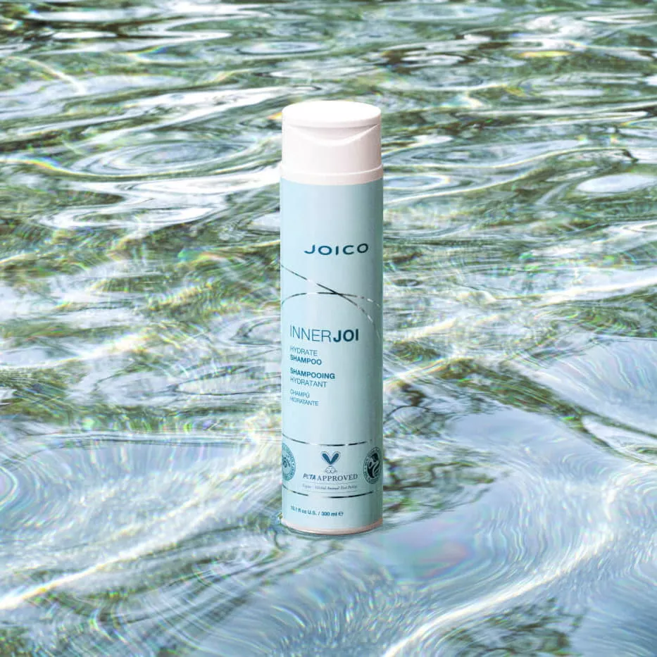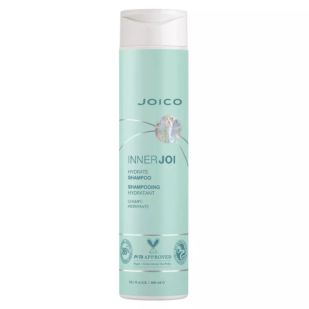 Joico InnerJoi Hydration to wegański szampon nawilżający z ekstraktem z jabłka do włosów przesuszonych, który delikatnie oczyszcza skórę głowy i włosy oraz nawilża i nadaje połysk włosom suchym i matowym. Zawiera 86% składników pochodzenia naturalnego