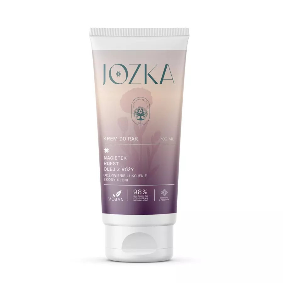 Krem do rąk Jozka Odżywczy krem do rąk nagietek rdest olej z róży 100ml to wyjątkowy produkt na bazie naturalnych olejów i wyciągów ziołowych, stworzony z myślą o skórze zniszczonej, podrażnionej i wymagającej odżywienia. Dzięki unikalnej formule przywraca dłoniom aksamitną miękkość i zdrowy wygląd. Produkt wegański, zawierający 98% składników pochodzenia naturalnego, doskonale wpisuje się w potrzeby świadomych konsumentów.