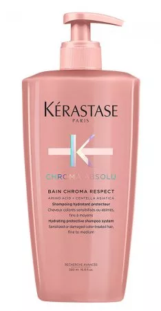 Szampon do włosów koloryzowanych Kerastase Chroma Absolu to bladoróżowy, kremowy żel o lekkiej formule. Kosmetyk zapewnia delikatne i bezpieczne oczyszczanie włosów i skóry głowy. Ponadto nawilża i odbudowuje pasma. Szampon zapewnia ochronę włosów przez wypłukiwaniem i blaknięciem. Pasma są miękkie, wyglądają zdrowo i cieszą intensywnym kolorem. Szampon zapewnia ożywienie koloru i niesamowity blask.