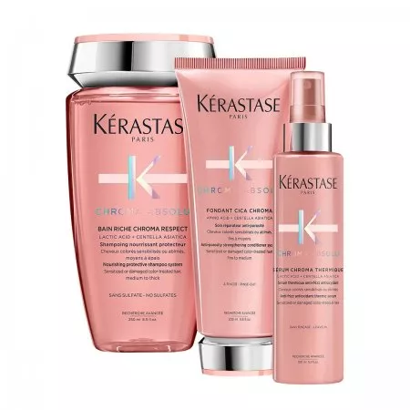 Kerastase Chroma Absolu Riche, zestaw do włosów koloryzowanych, szampon + odżywka + termoochrona