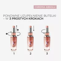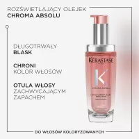 Olejek Chroma Absolu z możliwością ponownego uzupełniania nadaje długotrwały blask włosom farbowanym. Wzbogacony ekstraktem z wąkrotki azjatyckiej, rośliny dziko rosnącej w tropikalnym środowisku, chroni kolor włosów i sprawia, że emanują aurą uwodzicielskiego zapachu.