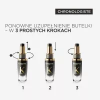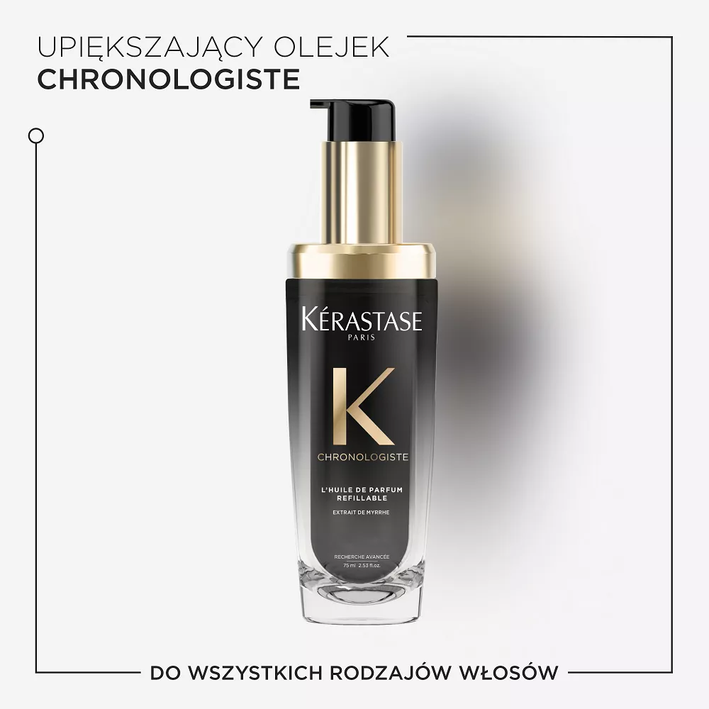 Olejek do włosów Chronologiste, wzbogacony ekstraktem z mirry, jest olejkiem zapachowym do włosów stworzonym na bazie wyjątkowego połączenia szlachetnych nut zapachowych: róży herbacianej, jasnego drewna i piżma. Już kilka kropel olejku o delikatnym zapachu sprawia, że włosy są zrewitalizowane, nawilżone i pogrubione.