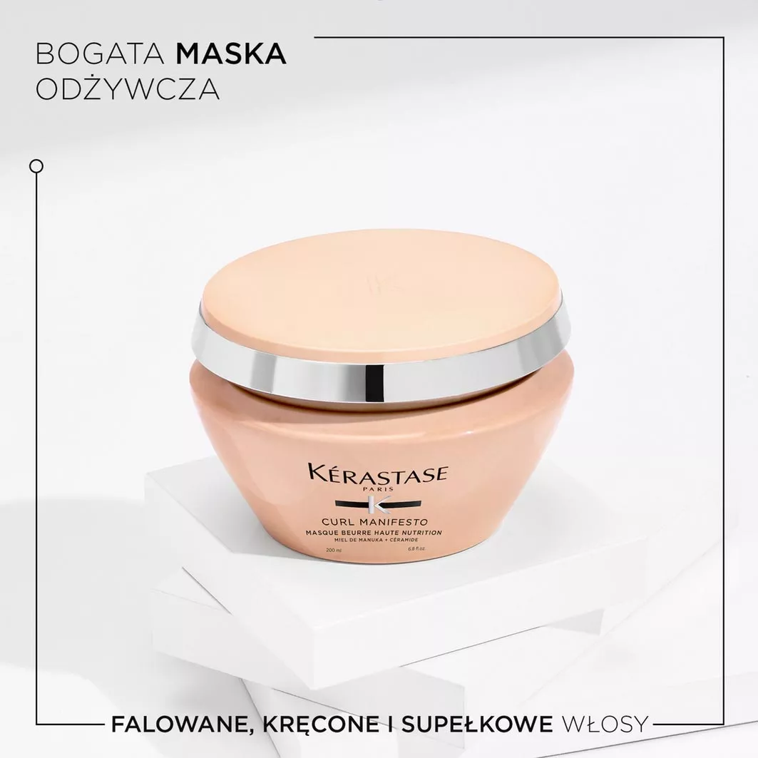 Bardzo odżywcza maska do falowanych, kręconych i supełkowych włosów Kerastase Curl Manifesto. Bogata formuła intensywnie odżywia i przywraca elastyczność oraz sprężystość falom i lokom zapobiegając łamliwości. Nadaje włosom miękkości. Stosuj rutynę pielęgnacyjną Curl Manifesto, aby wzmocnić i nadać elastyczności kręconym włosom oraz przywrócić im miękkość i połysk.