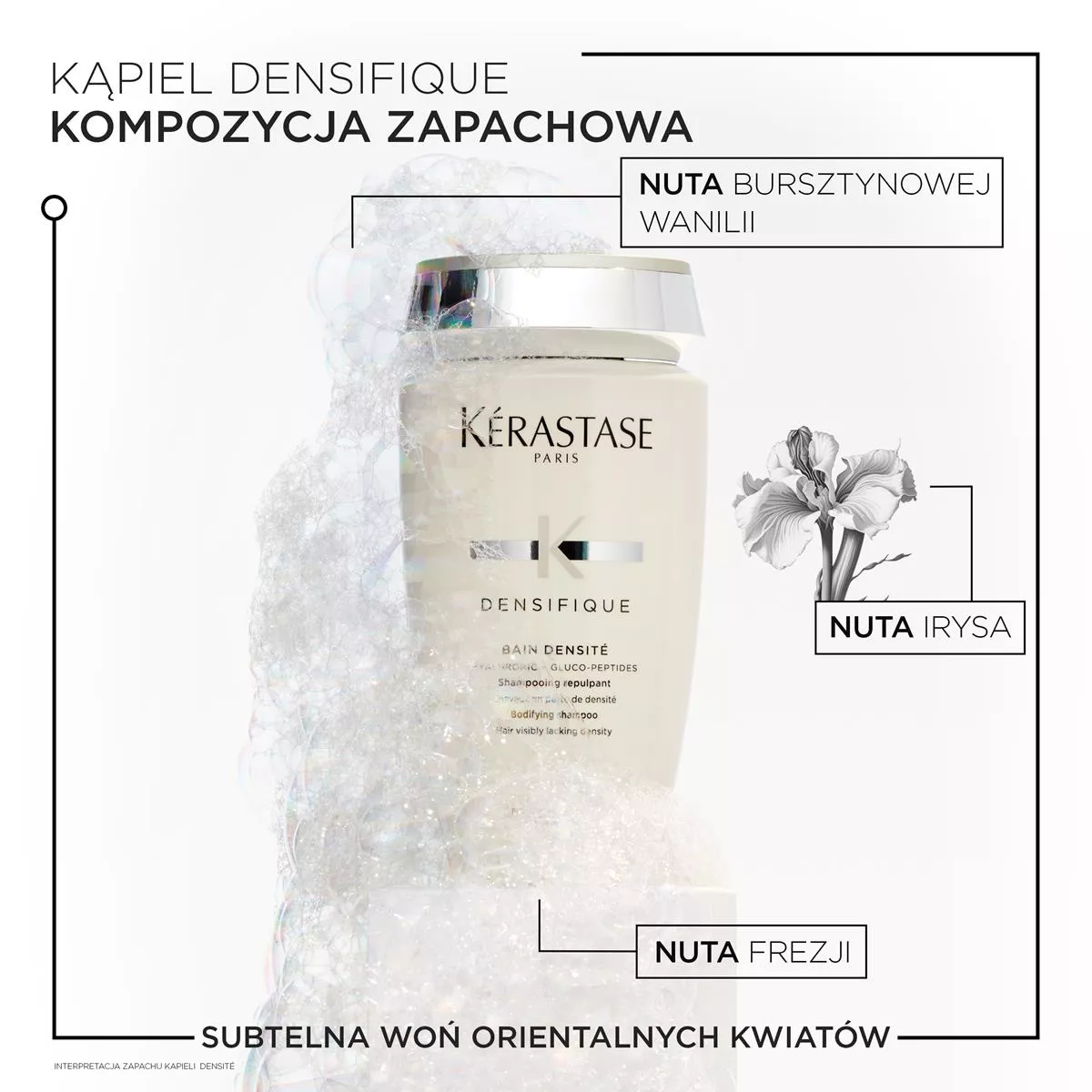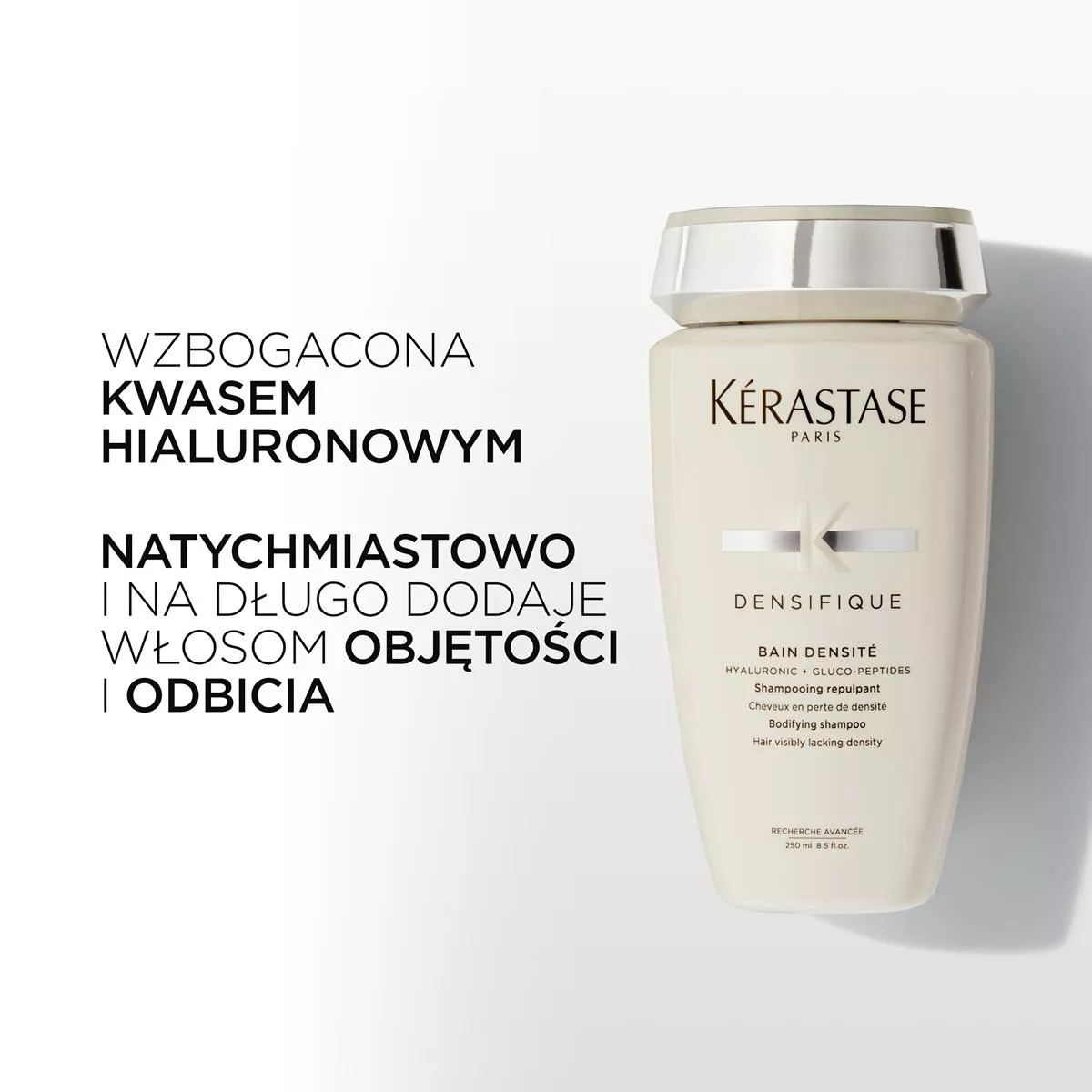 Jeśli Twoje włosy w ostatnim czasie lekko się przerzedziły lub są z natury cienkie i delikatne, sięgnij po kąpiel zagęszczającą Kerastase Densifique Densite. Szampon ten zaprojektowany jest z myślą o włosach, które tracą gęstość. Budzi on uśpione cebulki i pobudza je do wzrostu. W efekcie włosy stają się bardziej sprężyste, zyskują gęstości i są odporniejsze. W jego składzie znajduje się kwas hialuronowy, który odbija włosy i dodaje im "pulchności". Ponadto szampon zawiera Gluco-Peptydy oraz Stemoxydine, czyli cząsteczki działające zagęszczająco.