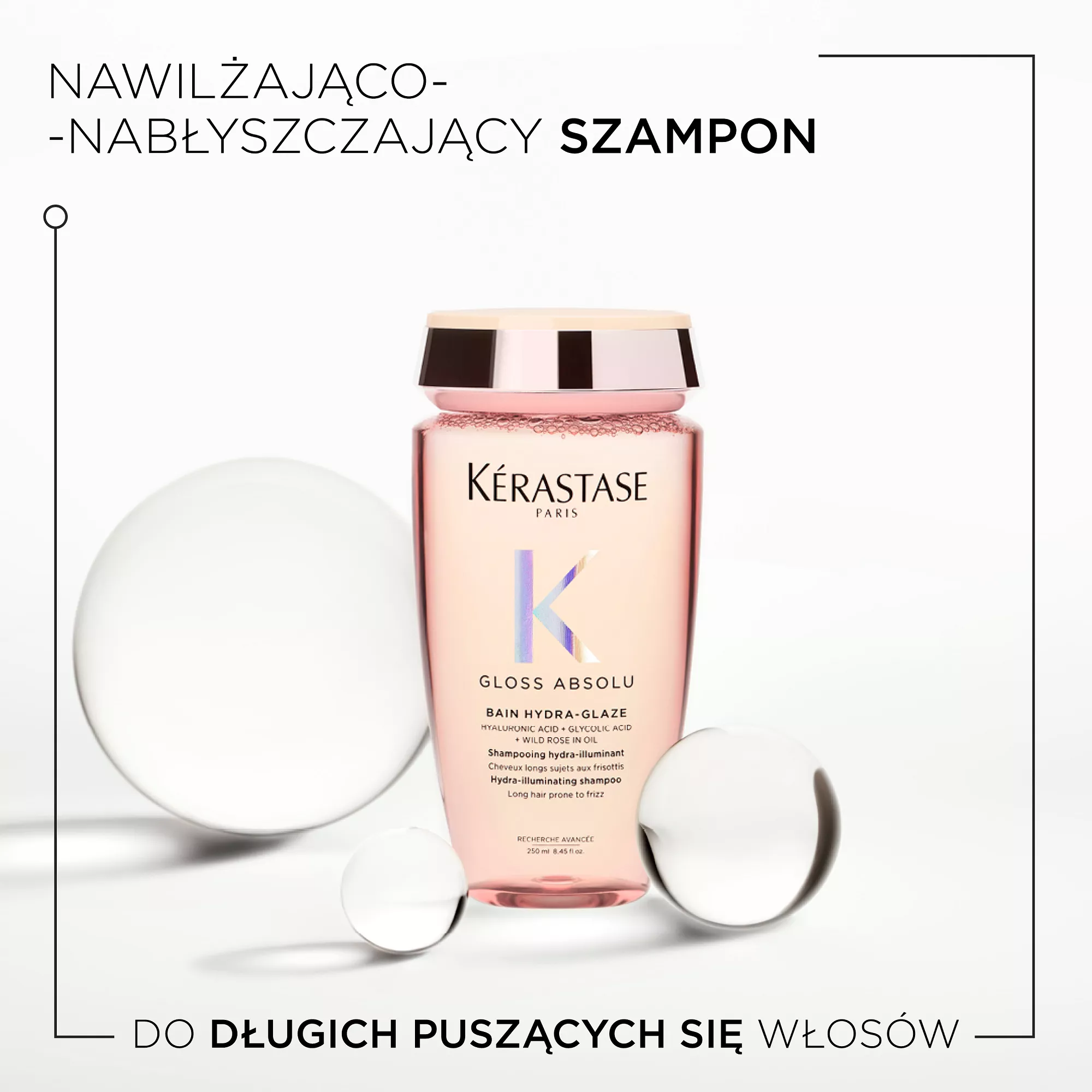 Kąpiel Hydra-Glaze od Kérastase to nawilżająco-nabłyszczający szampon do długich włosów z tendencją do puszenia się. Specjalna formuła z kwasem hialuronowym, kwasem glikolowym i olejkiem z dzikiej róży nadaje włosom wymarzoną sprężystość i piękny blask. Mocno pieniąca się żelowa formuła oczyszcza skórę głowy i powierzchnię włókien nadając włosom piękny, czysty i lśniący wygląd. Nawilża i uszczelnia łuski włosowe tworząc ultragładką powierzchnię.