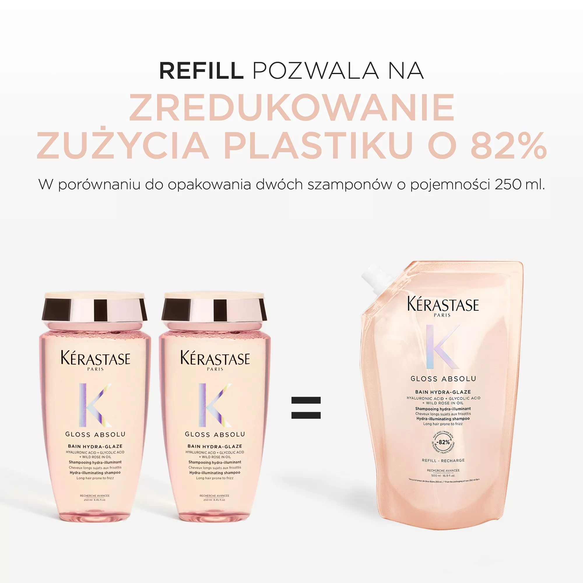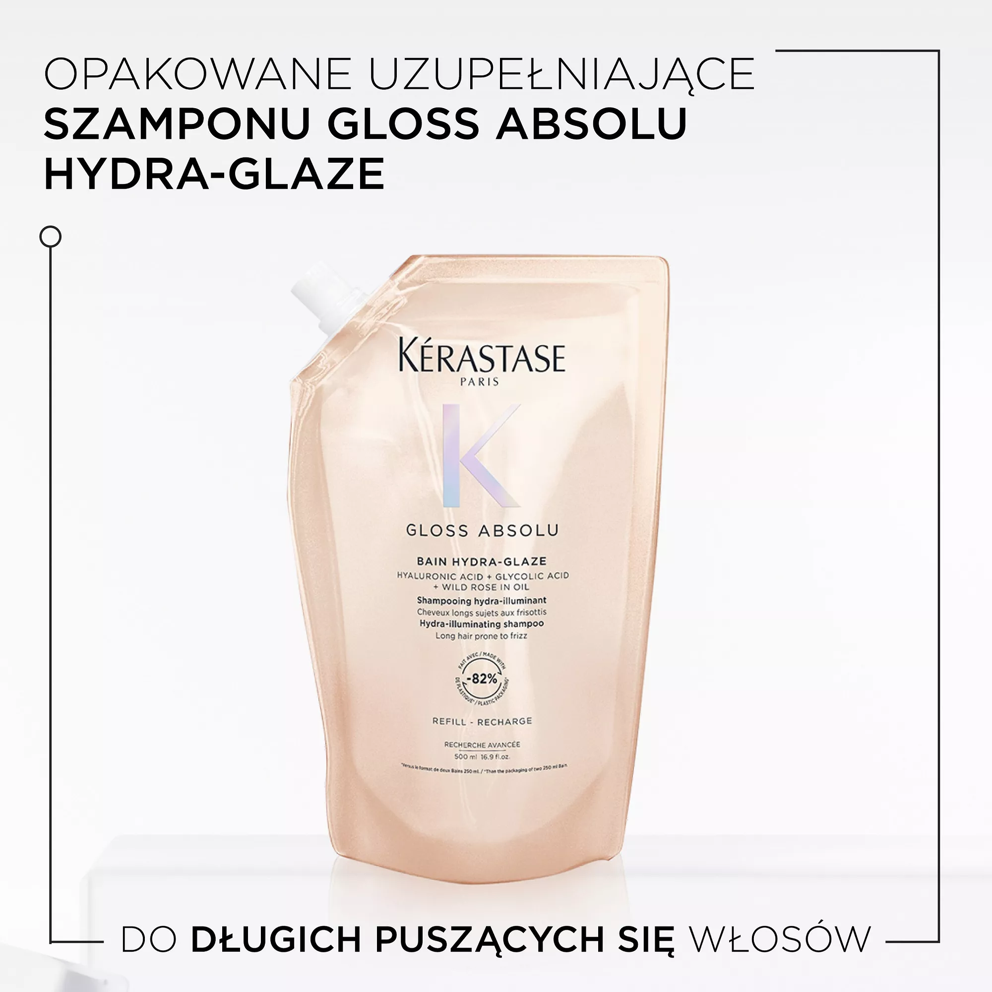 Kerastase Gloss Absolu Hydra Glaze Refill, szampon nawilżająco-nabłyszczający do włosów puszących się, 500ml