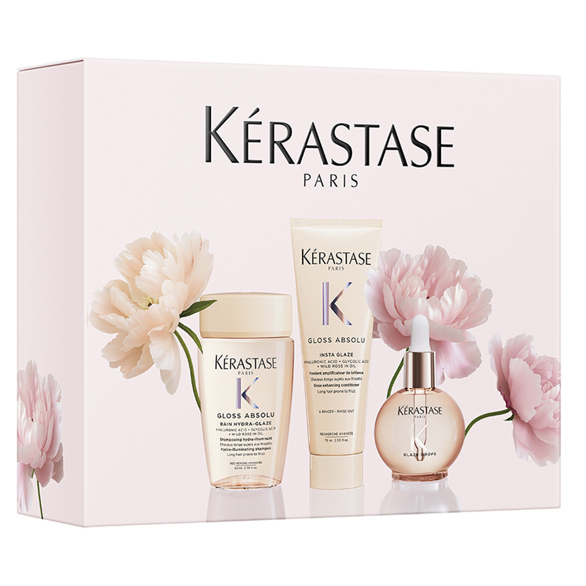 Wiosenny zestaw Gloss Absolu to propozycja dla kobiet zmagających się z długimi i puszącymi się włosami. W skład zestawu wchodzą: szampon i odżywka w pojemności podróżnej oraz pełnowymiarowa wersja olejku Glaze Drops, zapakowane w eleganckie pudełko prezentowe.