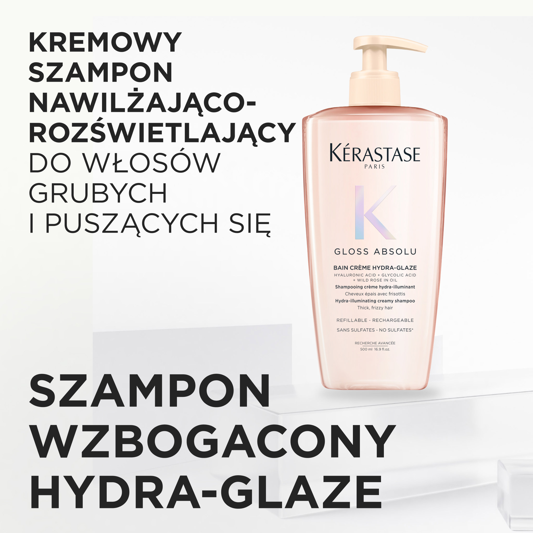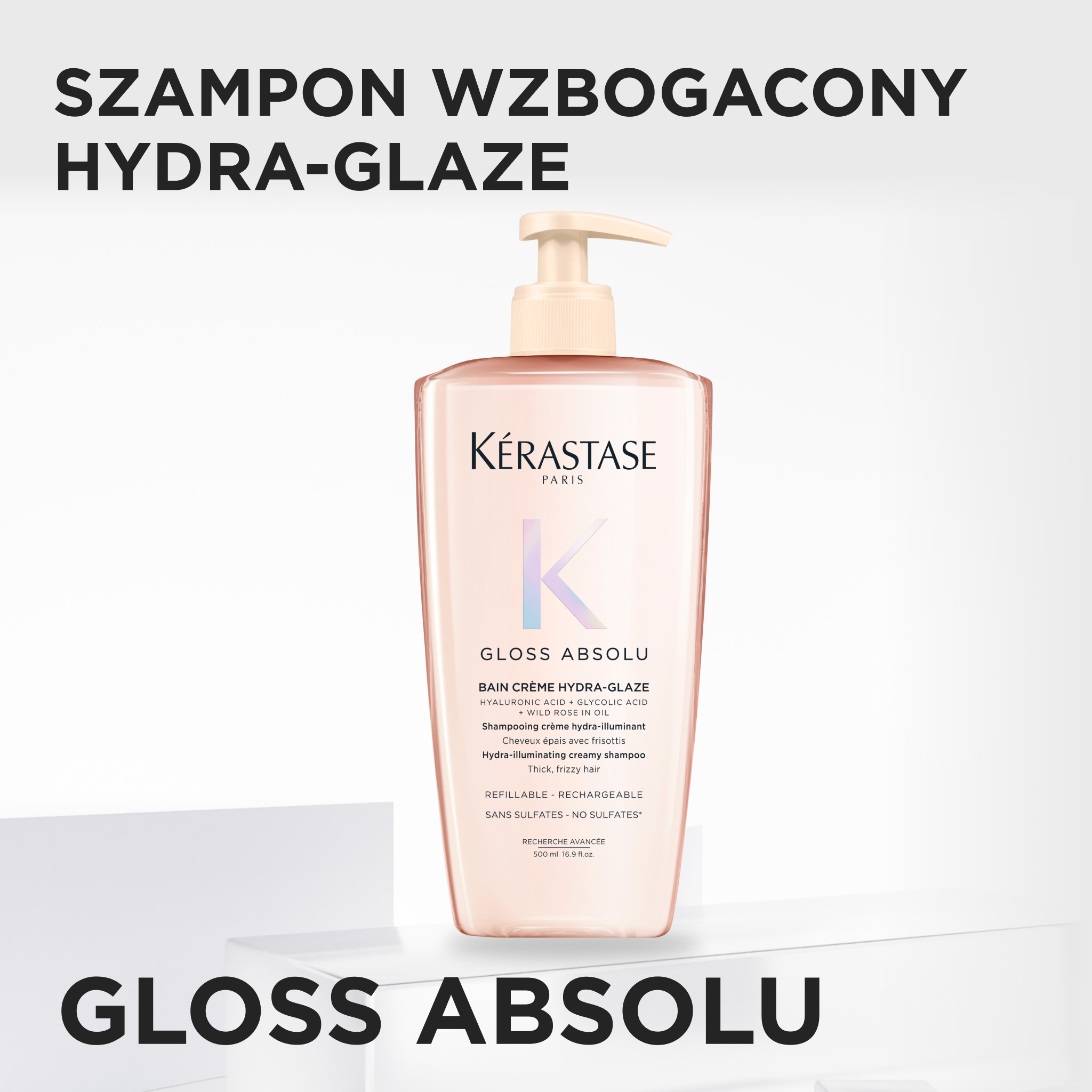 Kerastase Gloss Absolu, wzbogacona kąpiel, szampon do włosów grubych z tendencją do puszenia, 500ml