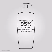 Butelka szamponu o pojemności 500ml do ponownego uzupełniania jest wykonana w 95% z plastiku pochodzącego z recyklingu* i wyprodukowana w fabryce ""z zamkniętym obiegiem wody”**, która osiągnęła 100% energii odnawialnej*** oraz z możliwością ponownego uzupełnienia wkładem uzupełniającym pozwalającym na zredukowanie zużycia plastiku o 82%****.