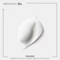 Odbudowująca Kąpiel dekalcyfikująca Kérastase Première to dekalcyfikujący szampon naprawczy do wszystkich typów włosów osłabionych zabiegami chemicznymi oraz zniszczonych. Ten szampon do użytku profesjonalnego delikatnie oczyszcza skórę głowy i włosy usuwając wapń, które osłabia włosy zniszczone. Naprawia włosy od wewnątrz, redukuje ich łamliwość i przywraca zdrowy wygląd. Biały, kremowy szampon, który zmienia się w luksusową piankę ma podwójne działanie: eliminuje nadmiar wapnia z twardej wody, który uszkadza osłabione już bądź rozjaśniane włosy i sprawia, że są one matowe, bez życia i wiotkie. Przywraca również połączenia keratynowe w trzonie włosa, naprawiając włosy. Włosy stają się gładkie i łatwe w układaniu, lśniące i sprężyste.