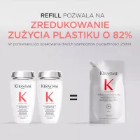 Butelka szamponu o pojemności 500ml do ponownego uzupełniania jest wykonana w 95% z plastiku pochodzącego z recyklingu* i wyprodukowana w fabryce ""z zamkniętym obiegiem wody”**, która osiągnęła 100% energii odnawialnej*** oraz z możliwością ponownego uzupełnienia wkładem uzupełniającym pozwalającym na zredukowanie zużycia plastiku o 82%****.