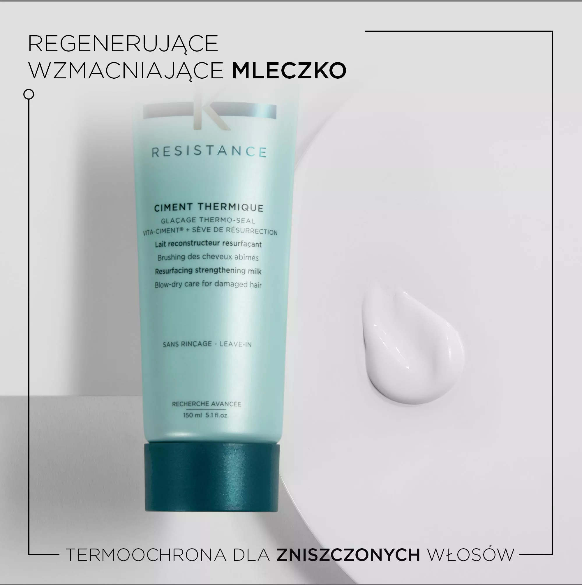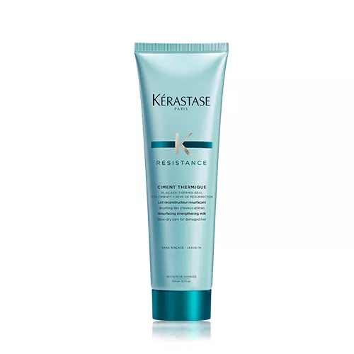 Odbudowujący cement termiczny Kerastase Resistance Ciment Termique zawiera niezwykle skuteczny kompleks Vita Ciment, który rekonstruuje połączenia międzykomórkowe wewnątrz włosa, dzięki czemu nawet widocznie zniszczone włosy odzyskują dobrą kondycję i zdrowy wygląd. Kompleks Vita Top Seal odbudowuje wierzchnią warstwę włosa, domyka odchylone łuski i sprawi, że struktura jest mniej porowata, przez co mniej podatna na uszkodzenia - słowem - włosy są mocniejsze i odporniejsze.