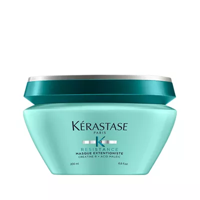 Marka Kerastase przygotowała kompletny program, dzięki któremu Twoje marzenie o długich włosach w końcu będzie mogło się spełnić. Seria kosmetyków Kerastase Resistance Extentioniste wzmacnia włosy, redukuje problem rozdwojonych końcówek i niweluje łamliwość pasm. Maska wzmacniająca włosy Kerastase Resistance Extentioniste sprawia, że włosy są mocniejsze na całej długości, również na końcach. Poza tym kosmetyk ułatwia rozczesywanie pasm i sprawia, że są bardziej odporne na zniszczenia. Kosmetyk ma przyjemną, lekką, zmysłową konsystencję. Maska zawiera unikatowy kompleks Creatine R, który stanowi połączenie ceramidów i kreatyny. Dzięki temu duetowi włosy są wyraźnie mocniejsze i nie łamią się - a Ty możesz je śmiało zapuszczać. Z kolei kwas maleinowy - kolejny składnik aktywny kosmetyku - wnika do wnętrza włosów i tam potęguje efekt wzmocnienia, a dodatkowo domyka łuski włosów. Maska jest szczególnie polecana do włosów zniszczonych i cienkich. Zniszczone włosy bardzo często są cienkie na końcach - dzięki masce odzyskują swoją dawną grubość, a w efekcie cała struktura włosa jest jednolita.