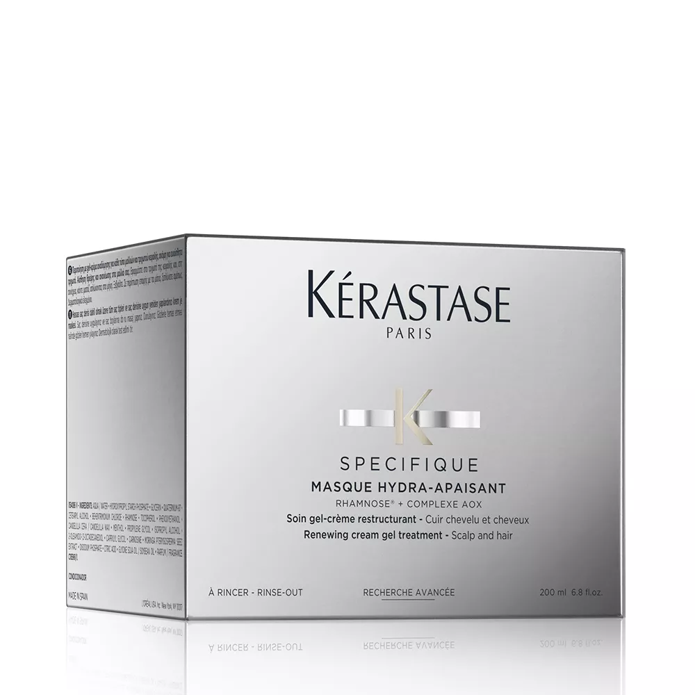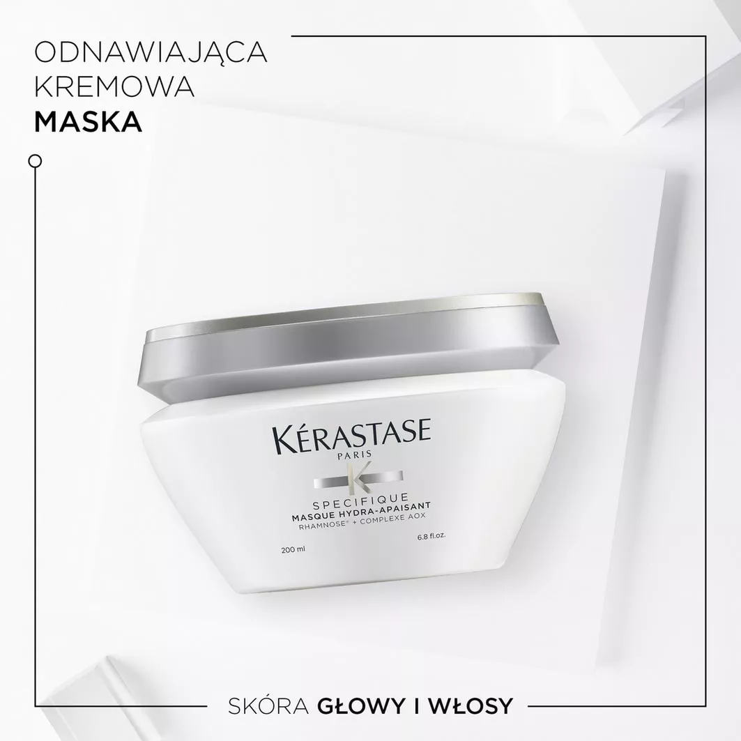 Maska Kerastase Specifique Masque Hydra-Apaisant ma działanie kojące i nawilżające. W jej składzie znajdziesz kompleks AOX, który składa się z L-Karnityny, ekstraktu z Moringa, witaminy E i Ramnozy. Maska posiada kremowo-żelową konsystencję. Idealna dla każdego rodzaju włosów. Koi skórę głowy i ją odświeża.
