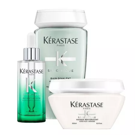 Przywracająca równowagę pielęgnacja od Kerastase o trwałych działaniu do włosów przetłuszczających się u nasady i uwrażliwionych na długościach. Kosmetyki z tej linii równoważą poziom sebum i jednocześnie nawilżają suche partie włosów, pozostawiając je cudownie miękkie i odżywione, a także przyjemnie świeże. Kerastase Specifique Divalent to kompleksowa rutyna pielęgnacyjna, która zapewnia świeże, zdrowo wyglądające włosy od nasady po same końce. W składzie kosmetyków znajdują się aminokwasy, witaminy, ceramidy i mentol.