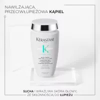 Nawilżająca kąpiel przeciwłupieżowa do włosów Kerastase Symbiose Anti-Pelliculaire ma przyjemną, kremową konsystencję. Szampon przywraca komfort wrażliwej i suchej skórze głowy ze skłonnością do łupieżu i działa kojąco. Ponadto szybko i skutecznie usuwa widoczne oznaki łupieżu oraz pozostawia kosmyki niezwykle delikatne w dotyku. Włosy stają się miękkie, błyszczące, wyglądają zdrowo i są odświeżone.