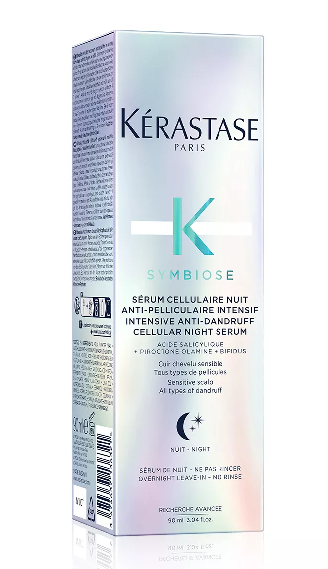 Przeciwłupieżowe serum do wrażliwej skóry głowy Kerastase Symbiose to nocna pielęgnacja wspierająca walkę z każdym rodzajem łupieżu. Kuracja wspiera wymianę komórek naskórka skóry głowy, regeneruje. Ponadto zawarty w serum kwas salicylowy oczyszcza skórę głowy i zluszcza martwe komórki naskórka, zaś pirokton olaminy i bifidius przywracają równowagę skórze głowy. Serum ma przyjemną w stosowaniu, mleczno-żelową, nietłustą i nieklejącą się formułę.