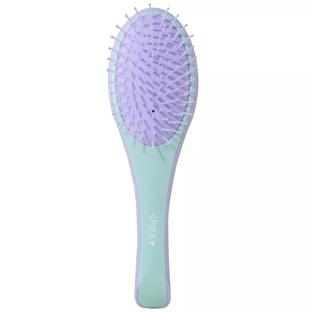 Szczotka do włosów KillyS Velvet Touch zachwyca pastelowymi kolorami mlecznego fioletu i mięty, które dodają jej elegancji i stylu. Zaprojektowana z myślą o komforcie użytkowania, posiada profilowaną rączkę z wykończeniem soft touch, która idealnie leży w dłoni, ułatwiając codzienne czesanie włosów.