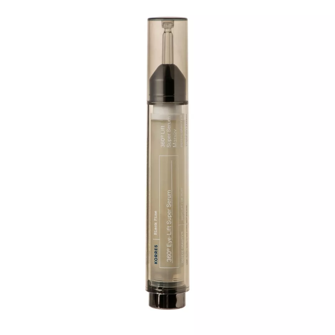 Korres Black Pine 360 Lift Super Serum liftingujące serum pod oczy 15ml to intensywnie liftingująco-ujędrniające serum do skóry wokół oczu, zawierające 95,5% składników pochodzenia naturalnego. Dzięki innowacyjnej formule, serum skutecznie podnosi górną powiekę i ujędrnia całą okolicę oczu. Redukuje widoczne zmarszczki, rozjaśnia cienie pod oczami i zmniejsza obrzęki, przywracając spojrzeniu młodzieńczy blask. Produkt ma formułę wegańską.