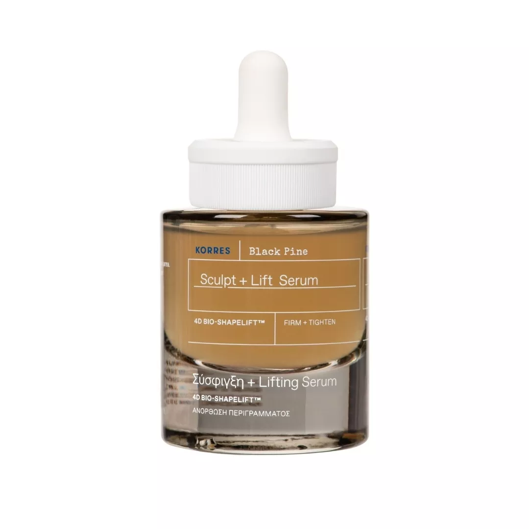 Odkryj moc Korres Black Pine Sculpt + Lift Serum, intensywnego serum ujędrniająco-liftingującego, które działa cuda na Twojej skórze. To skoncentrowane serum do twarzy nie tylko ujędrnia i wyostrza rysy, ale także skutecznie redukuje widoczne linie i zmarszczki. Dzięki zaawansowanej technologii 4D BIO-SHAPELIFT™ oraz ekstraktowi z czarnej sosny, bogatemu w polifenole, Twoja skóra zyska na elastyczności i napięciu. Serum oparte jest na 97,6% składników pochodzenia naturalnego, jest wegańskie i testowane dermatologicznie.
