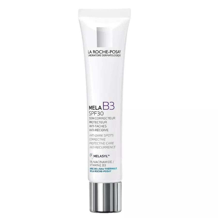 La Roche Posay Mela B3 to innowacyjny krem przeciw przebarwieniom z filtrem SPF30, który powstał po 18 latach badań naukowych. Opracowany z myślą o redukcji hiperpigmentacji, zawiera Melasyl™ – opatentowany składnik aktywny, który wychwytuje nadmiar melaniny, zanim zdąży ona wywołać widoczne zmiany na skórze. Dodatkowo, zawartość 5% niacynamidu wspomaga wyrównanie kolorytu skóry.