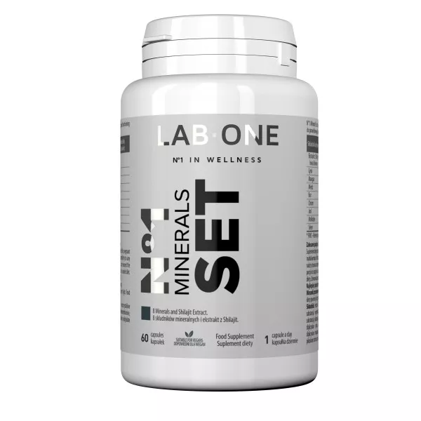 LAB ONE N°1 Minerals Set to suplement diety zaprojektowany z myślą o wsparciu zdrowia zarówno mężczyzn, jak i kobiet. Zawiera kompleks 8 niezbędnych składników mineralnych oraz ekstrakt z Shilajit, znany jako Mumio, standaryzowany na zawartość kwasu fulwowego. Składniki te są kluczowe dla prawidłowego funkcjonowania organizmu, wspierając m.in. układ odpornościowy, nerwowy oraz procesy metaboliczne.