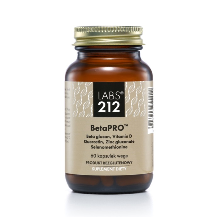 Suplement diety LABS212 BetaPro to zaawansowany preparat w formie kapsułek, opracowany z myślą o wsparciu układu odpornościowego. Zawiera unikalne połączenie składników, takich jak beta glukany z drożdży Saccharomyces cervisiae 1,3-1,6, naturalna witamina D z lanoliny, kwercetyna Quercefit®, cynk w formie glukonianu cynku, L-selenometionina, L-leucyna oraz błonnik z akacji. Produkt ten jest bezglutenowy i wspomaga zdrowie na wielu poziomach.