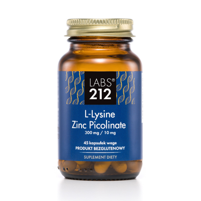 Suplement diety LABS212 L-Lysine Zinc Picolinate to preparat w postaci kapsułki roślinnej, który dostarcza organizmowi niezbędne składniki, takie jak lizyna oraz cynk w formie pikolinianu cynku. Produkt ten jest idealny dla osób dbających o zdrowie układu odpornościowego, skóry oraz włosów.