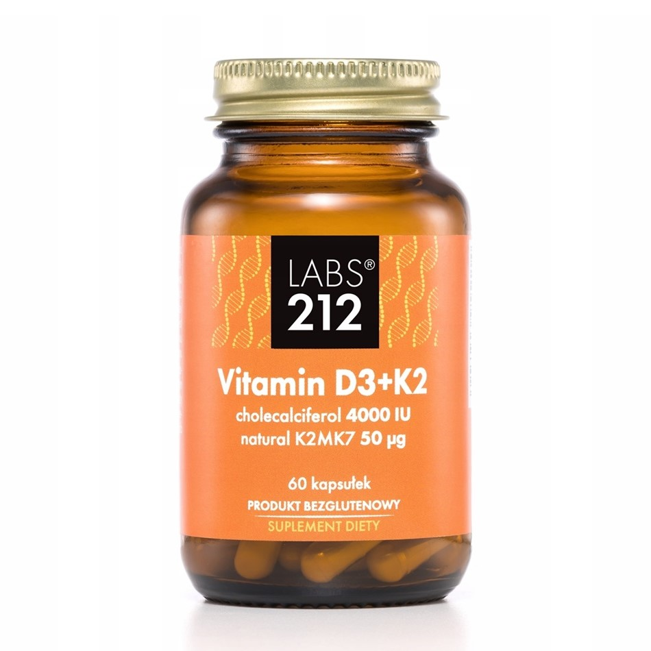 Suplement diety LABS212 Vitamin D3 + K2 to innowacyjny preparat w formie kapsułek roślinnych, zawierający patentowaną witaminę D3 pozyskiwaną z lanoliny oraz naturalną, patentowaną witaminę menachinon K2MK7 vitaMK7®. Produkt jest bezglutenowy, co czyni go odpowiednim dla osób z nietolerancją glutenu.