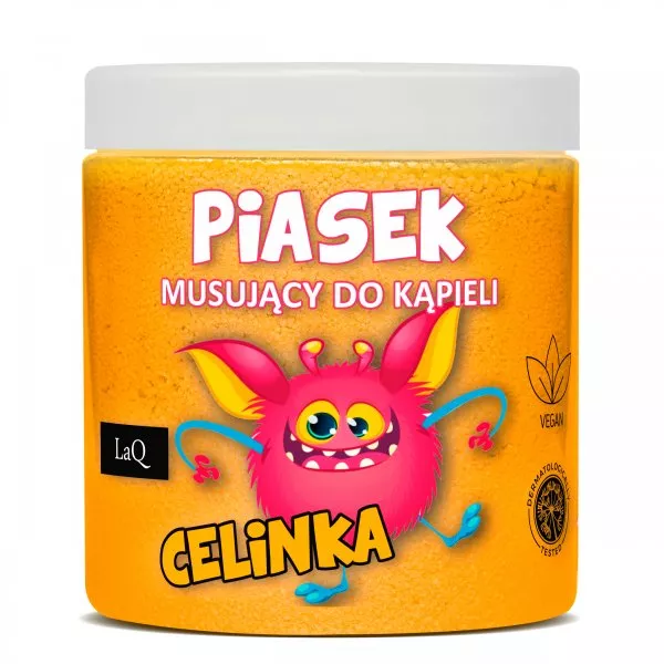 Cześć, tu Celinka! Jestem różowym stworkiem, za którym znajdziesz pomarańczowy, musujący piasek kąpielowy o zapachu słodkiego ananasa. Gdy tylko rozpuścisz mnie w wodzie, zaczynam musować i wypełniam łazienkę cudownym aromatem. To doskonały sposób, aby dodać radości każdej kąpieli! Możesz mnie sypać, mieszać i bawić się moimi musującymi mocami do woli.