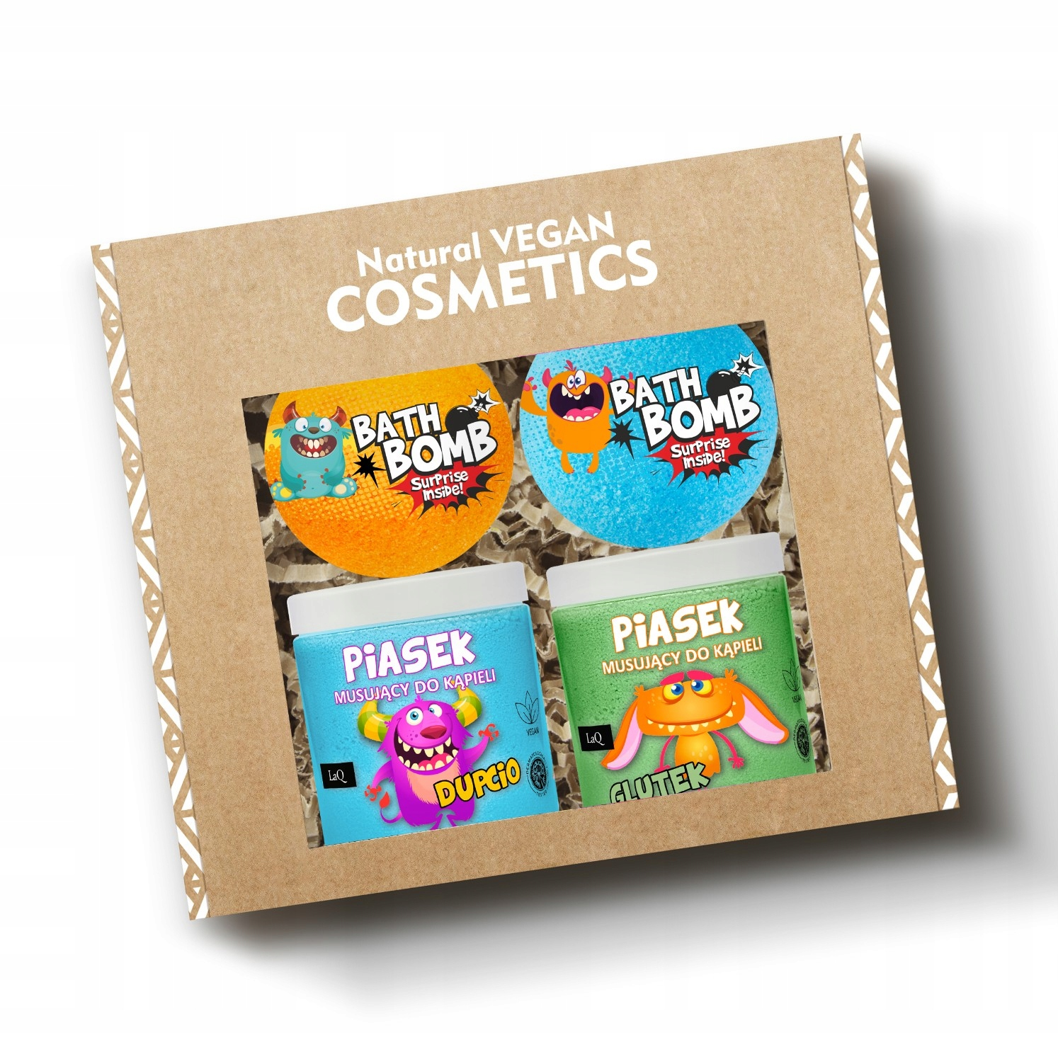 Zestaw do kąpieli LaQ Dziecięcy to idealne rozwiązanie dla rodziców, których dzieci nie przepadają za kąpielą lub myciem rączek. Wprowadź do codziennej pielęgnacji wyjątkową zabawę i aromatyczne doznania! W komplecie znajdują się 2 musujące piaski do kąpieli oraz 2 kule z niespodzianką, które zamienią każdą kąpiel w ekscytującą przygodę. Piaski i kule nie tylko pięknie pachną, ale również pielęgnują skórę dziecka, pozostawiając ją miękką i przyjemną w dotyku.