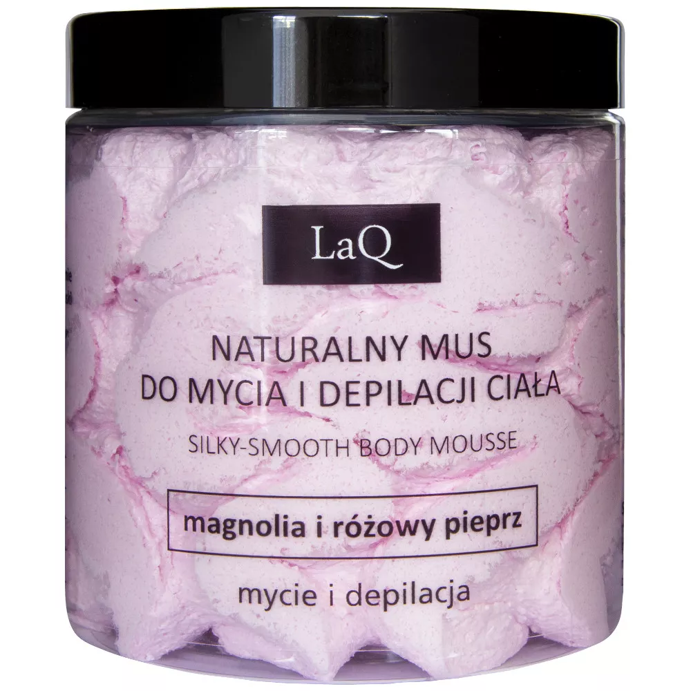 LaQ Kicia Magnolia to intensywnie nawilżający, naturalny mus do mycia i depilacji ciała, który zachwyca swoją lekką konsystencją i wspaniałym zapachem. Łączy w sobie właściwości żelu do mycia ciała i pianki do golenia, a także może zastąpić szampon do włosów. Formuła produktu oparta jest na łagodnych substancjach myjących, co sprawia, że jest idealny nawet dla bardzo wrażliwej skóry. Dzięki swojej wyjątkowo delikatnej formule, mus jest odpowiedni do depilacji całego ciała, w tym okolic intymnych, a jego komfortowe użytkowanie i wydajność to kolejne atuty.