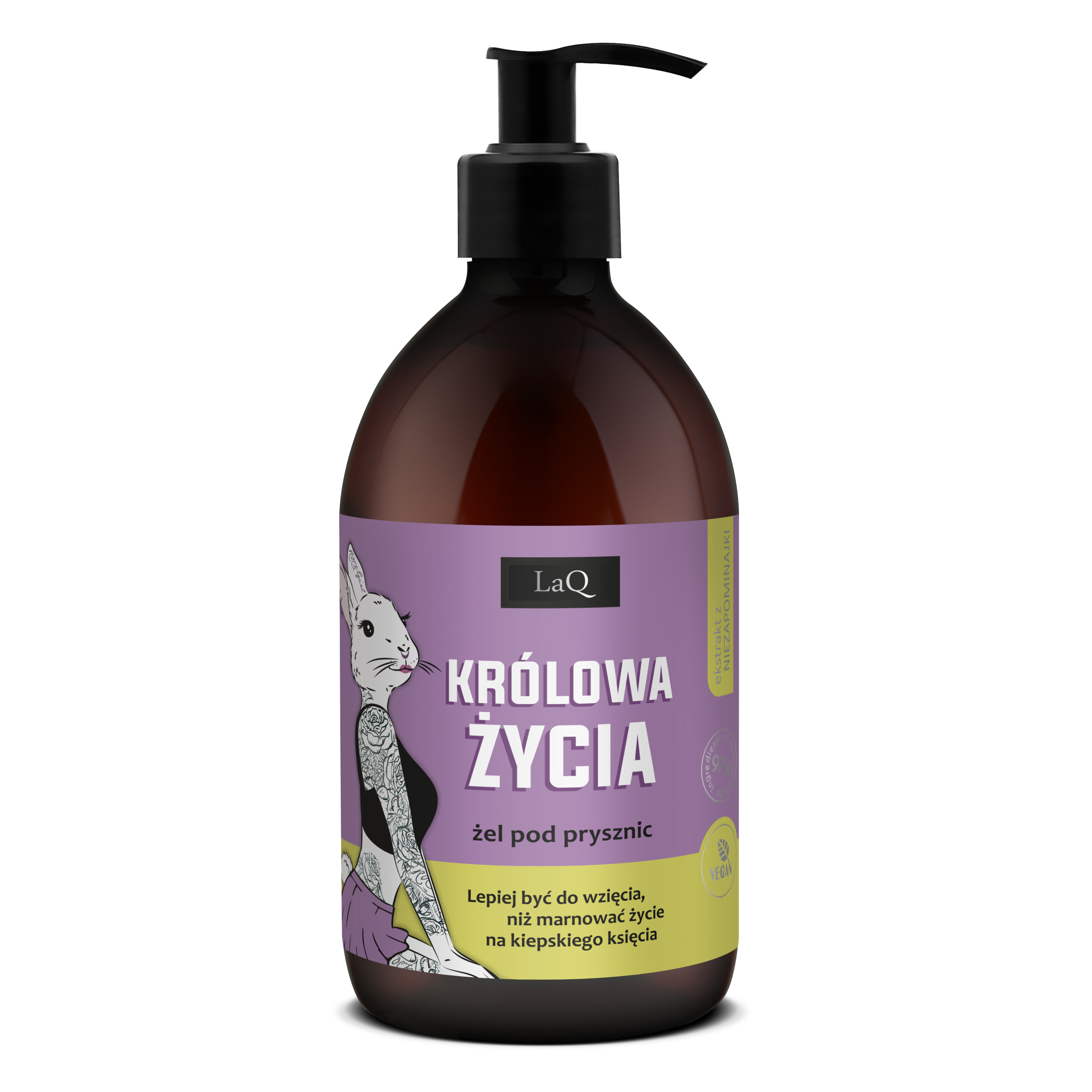LaQ Niezapominajka, królowa życia to zmysłowy żel pod prysznic dla kobiet, który łączy łagodne substancje myjące z bogactwem naturalnych ekstraktów. Stworzony z myślą o kobietach subtelnych i pełnych naturalnego wdzięku, żel otula skórę urzekającym zapachem, pobudza zmysły i zapewnia codzienną dawkę energii. Delikatna formuła dba o mikrobiom skóry, głęboko ją nawilża i koi, pozostawiając uczucie świeżości oraz wyjątkowej miękkości.