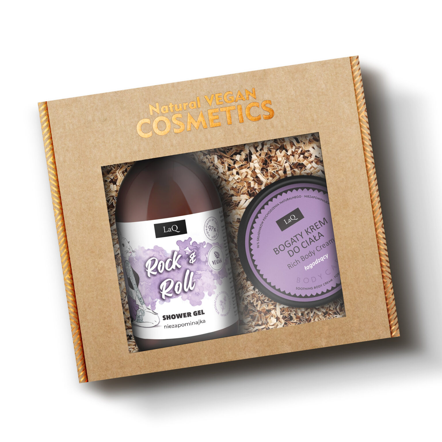 LaQ Niezapominajka Silver to wyjątkowy, naturalny i wegański zestaw kosmetyków, który składa się z żelu pod prysznic 500 ml oraz kremu do ciała 200 ml. Całość zapakowana jest w elegancki kartonik z okienkiem, wypełniony siankiem, co czyni ten komplet doskonałym pomysłem na prezent dla kobiet ceniących subtelność, naturalność i wyjątkowe doznania zapachowe. Zestaw stworzony został z myślą o pielęgnacji skóry oraz zmysłów, a jego unikalny aromat sprawia, że trudno o nim zapomnieć.