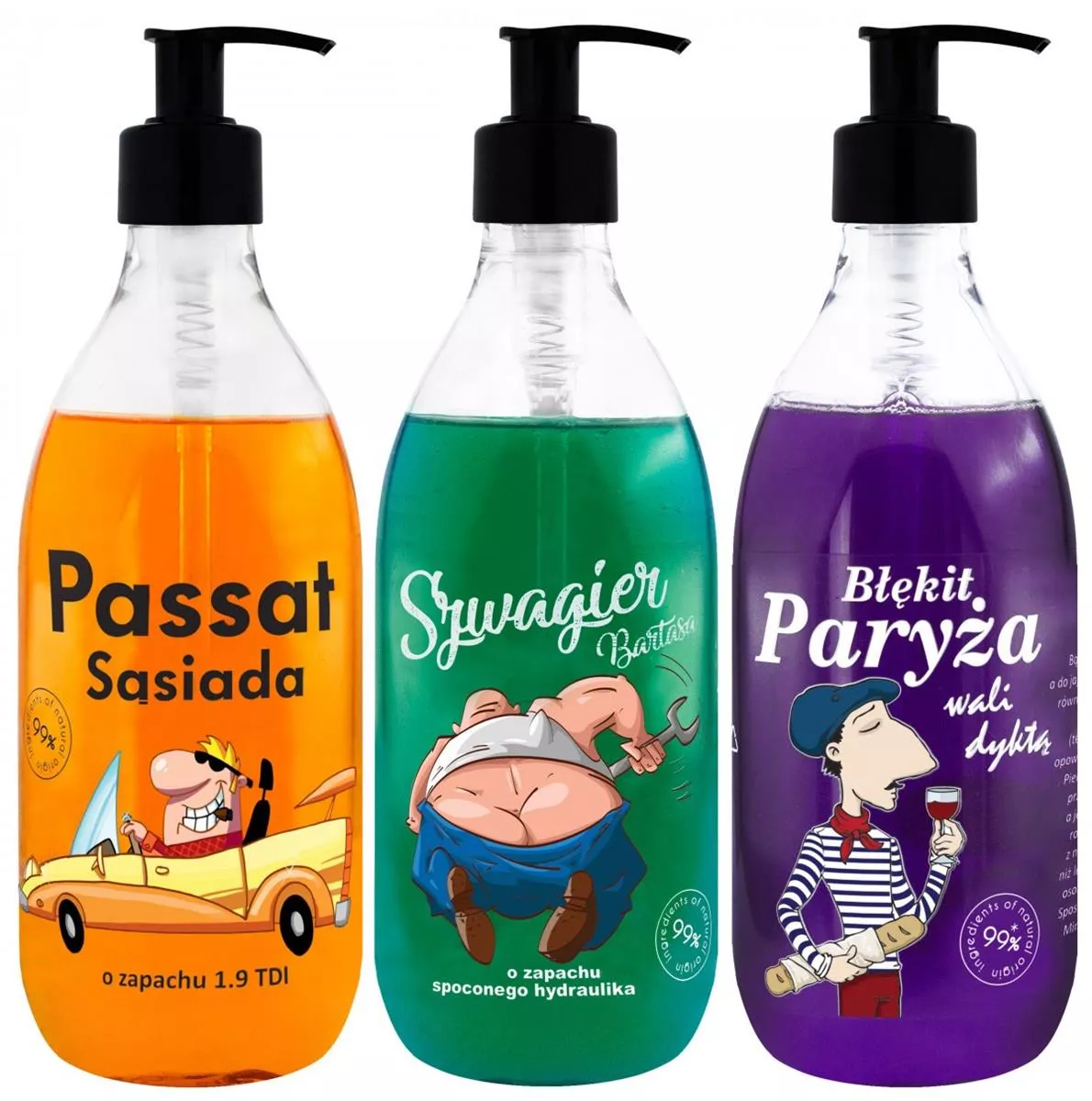 - Trzy żele pod prysznic o niepowtarzalnych zapachach.