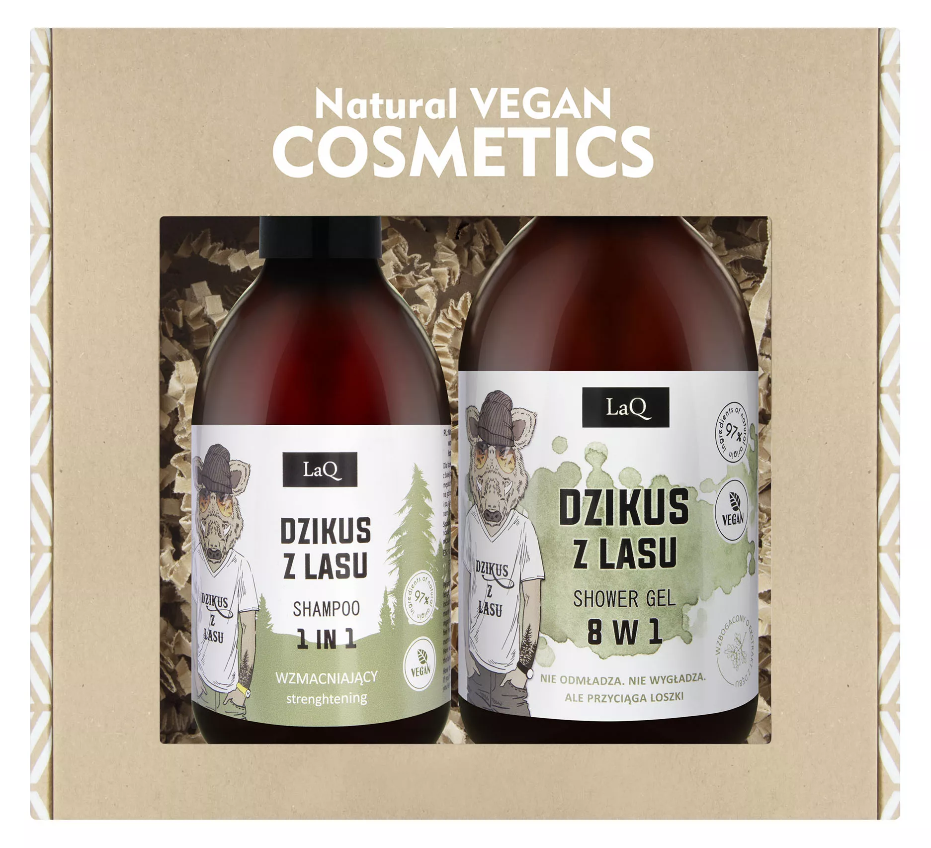 - Szampon dla facetów 1 w 1 DZIKUS Z LASU 300 ml – naturalny i wegański szampon do włosów o działaniu wzmacniającym. Zawiera kompleks z szeń-szenia, łopianu, skrzypu i przytulii oraz pachnie ekstremalnie dziko męskimi perfumami.