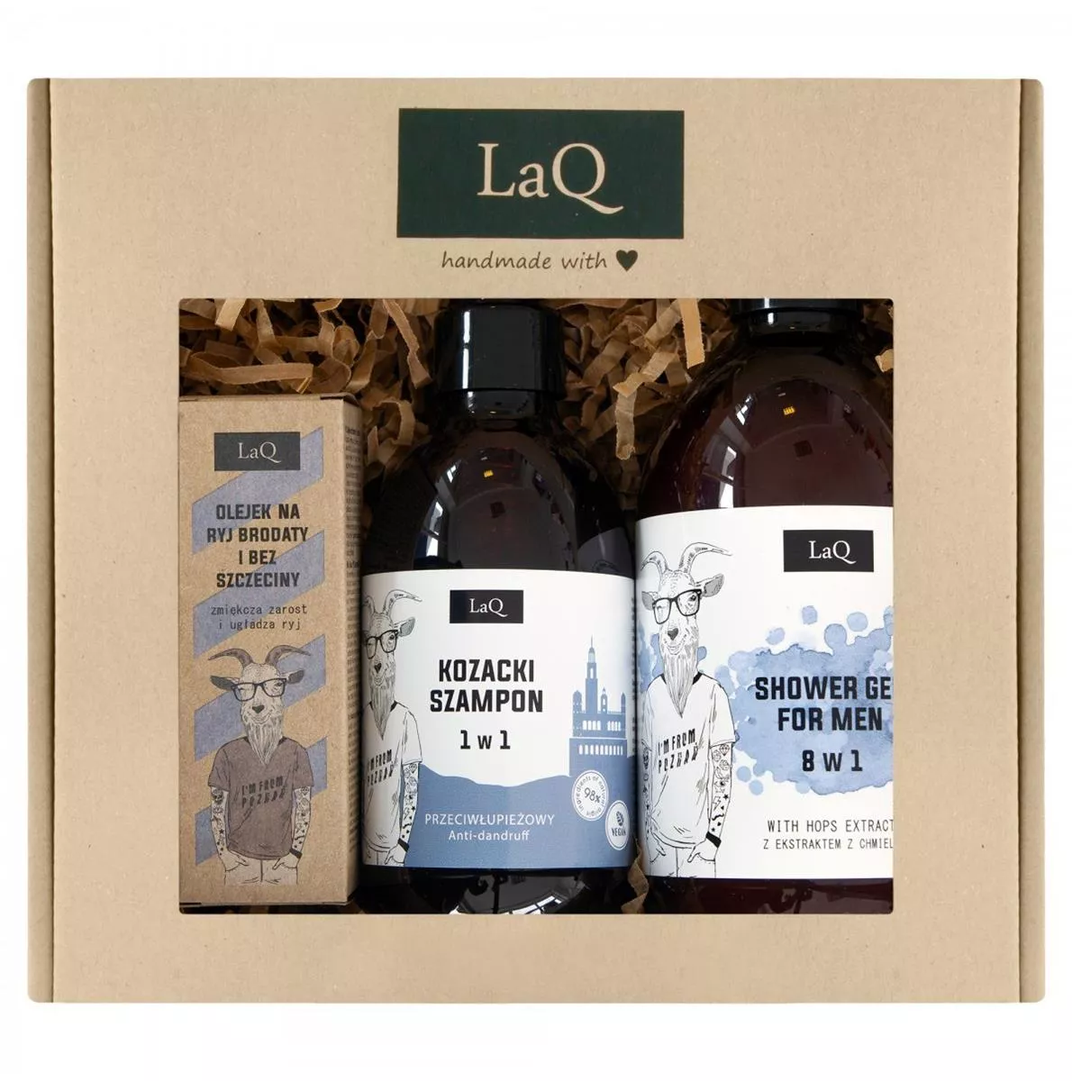 Szukasz idealnego prezentu dla swojego mężczyzny? Zestaw prezentowy LaQ "Kozioł z Poznania" to doskonały wybór na Dzień Chłopaka, urodziny, imieniny, święta i wiele innych okazji. To wyjątkowy zestaw, który z pewnością przypadnie do gustu każdemu mężczyźnie, dbając o jego codzienną pielęgnację i komfort.