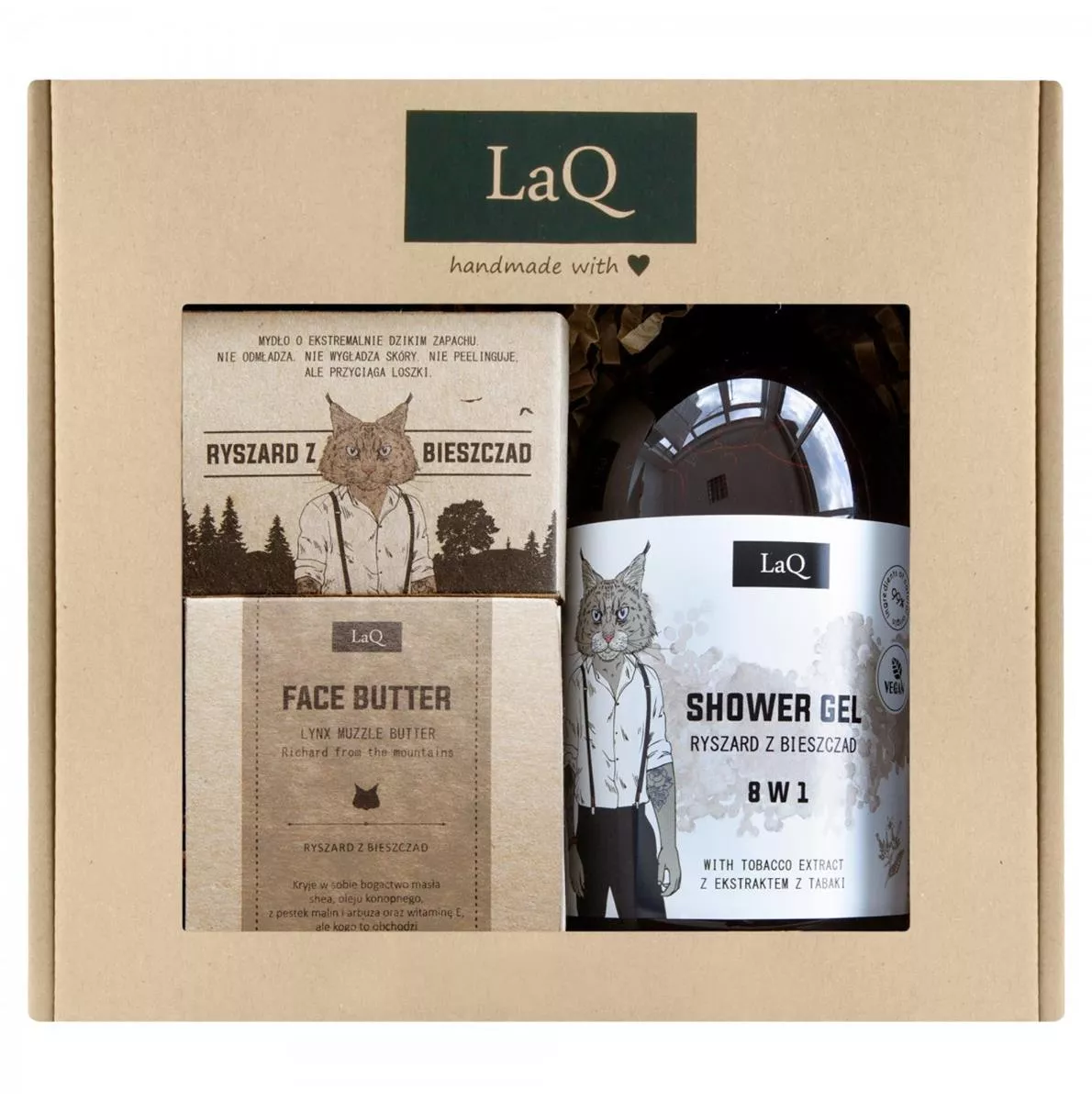 Zestaw naturalnych kosmetyków dla mężczyzn LaQ Ryszard z Bieszczad to idealne połączenie przyjaznych składów, męskiego zapachu i skutecznych formuł. To doskonały wybór na prezent z okazji świąt, Dnia Chłopaka, urodzin czy imienin. Zestaw zawiera wszystko, czego potrzebuje każdy mężczyzna do codziennej pielęgnacji.