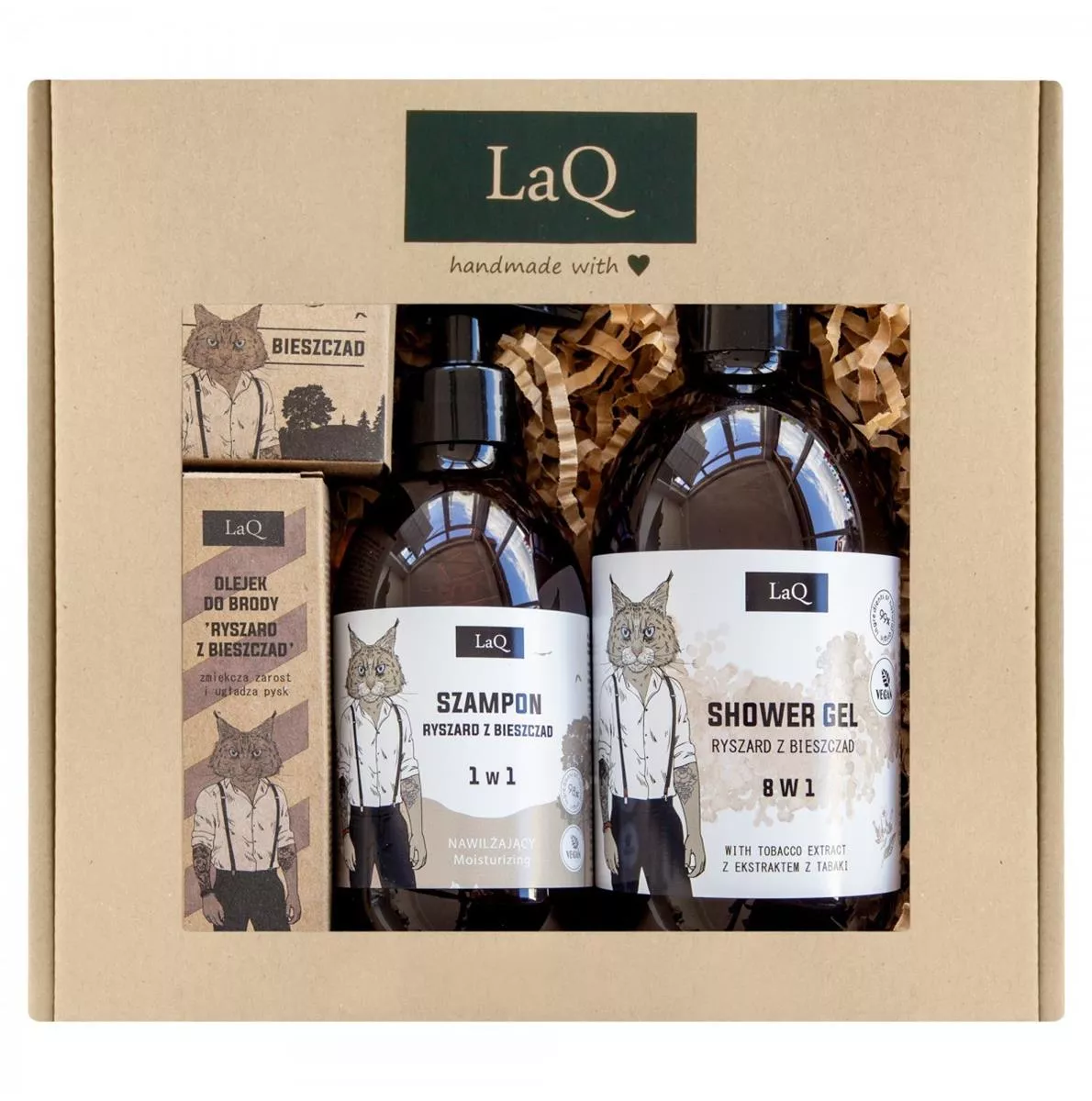 Zestaw naturalnych kosmetyków dla mężczyzn LaQ Ryszard z Bieszczad to idealne rozwiązanie dla każdego mężczyzny ceniącego sobie przyjazne składniki, męski zapach i skuteczne formuły. Ten zestaw to doskonały pomysł na prezent na święta, dzień chłopaka, urodziny czy imieniny.