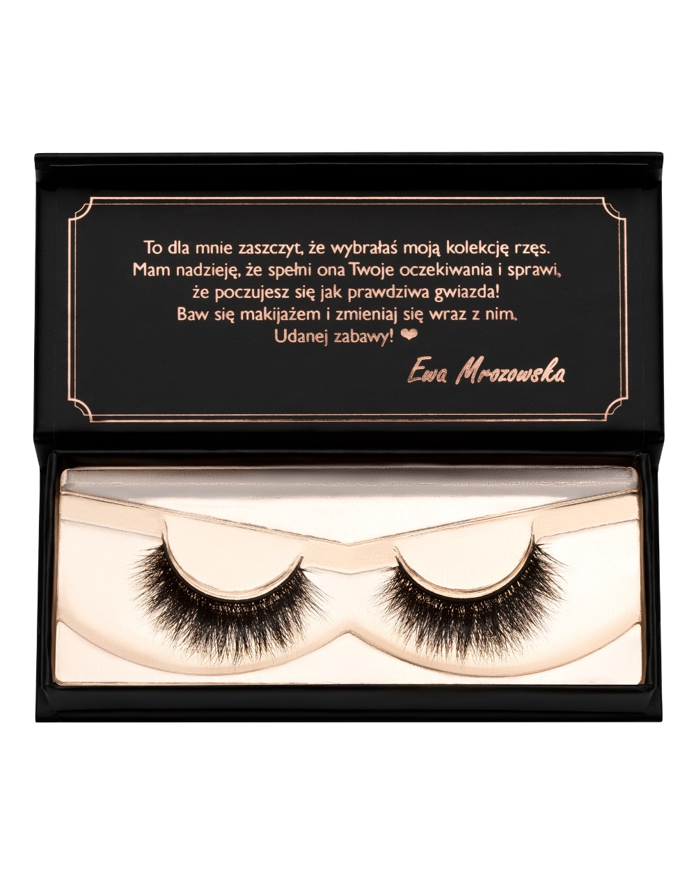 Gold Queen dzięki delikatnemu i niezwykle puszystemu designowi jest wszechstronną opcją na każdy dzień lub specjalne okazje. Te super lekkie rzęsy zapewniają długość i podkręcenie, a jednocześnie są stworzone tak, aby pięknie otwierać oczy. Efekt jak u najlepszej stylistki rzęs, który utrzymuje się przez 30 użyć. Model zaprojektowany przez Ewę Mrozowską we współpracy z Lash Me Up!