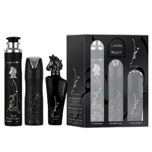 Zestaw Maahir Black Edition od Lattafa to wyjątkowa kompozycja zapachowa, która oferuje pełne doświadczenie luksusu i elegancji. W jego skład wchodzi woda perfumowana o pojemności 100 ml, dezodorant w sprayu 200 ml oraz odświeżacz powietrza 300 ml. To doskonała propozycja dla osób ceniących sobie nie tylko wyrafinowany zapach, ale także estetyczny design flakonów.