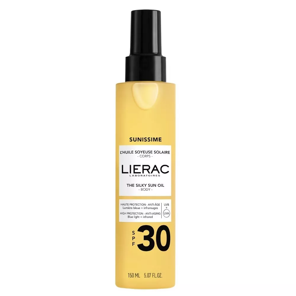Odkryj jedwabisty olejek ochronny do ciała Lierac Sunissime SPF30, który oferuje wysoką ochronę przed promieniowaniem UVB i UVA dzięki zaawansowanemu systemowi filtrów organicznych. Wzbogacony o kompleks składników aktywnych, ten olejek nie tylko chroni przed słońcem, ale także przed negatywnym wpływem światła niebieskiego i promieniowania podczerwonego. Działa przeciwstarzeniowo, pomagając zapobiegać zmarszczkom, przebarwieniom i utracie jędrności skóry.