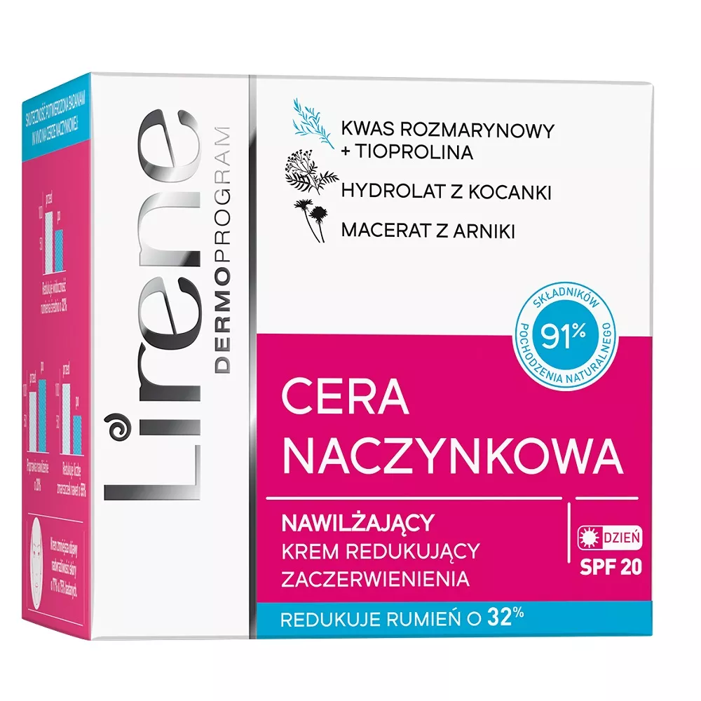 Lirene Cera Naczynkowa to nawilżający krem redukujący zaczerwienienia, opracowany specjalnie dla delikatnej cery naczynkowej. Dzięki lekkiej formule, jest doskonały do codziennego stosowania, a jego składniki zostały starannie dobrane, aby zapewnić skórze optymalną ochronę i pielęgnację.