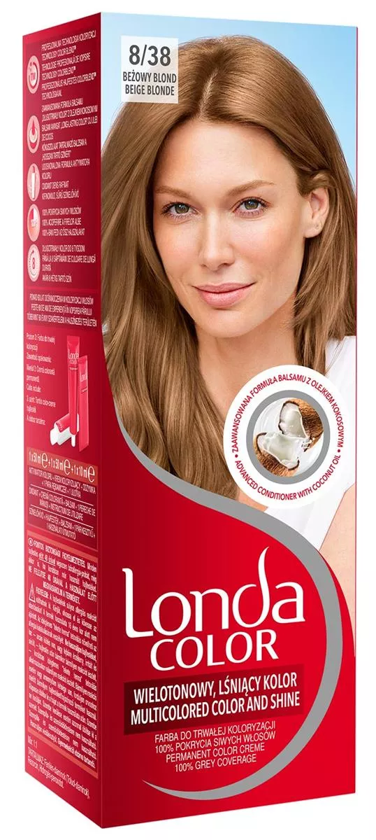 Farba do trwałej koloryzacji Londa Color. Technologia Color Blend ™to unikalna, opatentowana technologia która łączy różne, bogate w pigmenty tony jednego koloru nadając Twoim włosom wielotonowy, pełen blasku kolor. Dodatkowo zaawansowany balsam „długotrwały kolor” z olejkiem kokosowym odżywia włosy i tworzy barierę ochronną zapobiegającą wypłukiwaniu koloru. Jego ulepszona formuła zawiera aminokwas histydynę, który pozwala zneutralizować szkodliwe działanie składników chemicznych na włosy dzięki czemu włosy są lśniące, miękkie i gładkie w dotyku. Londa Color gwarantuje 100% pokrycia siwych włosów oraz długotrwały kolor aż do 8 tygodni. Opakowanie zawiera: • krem koloryzujący 50 ml, • emulsję aktywującą 50 ml, • odżywkę 10 ml, • parę rękawiczek, • instrukcję użycia.
