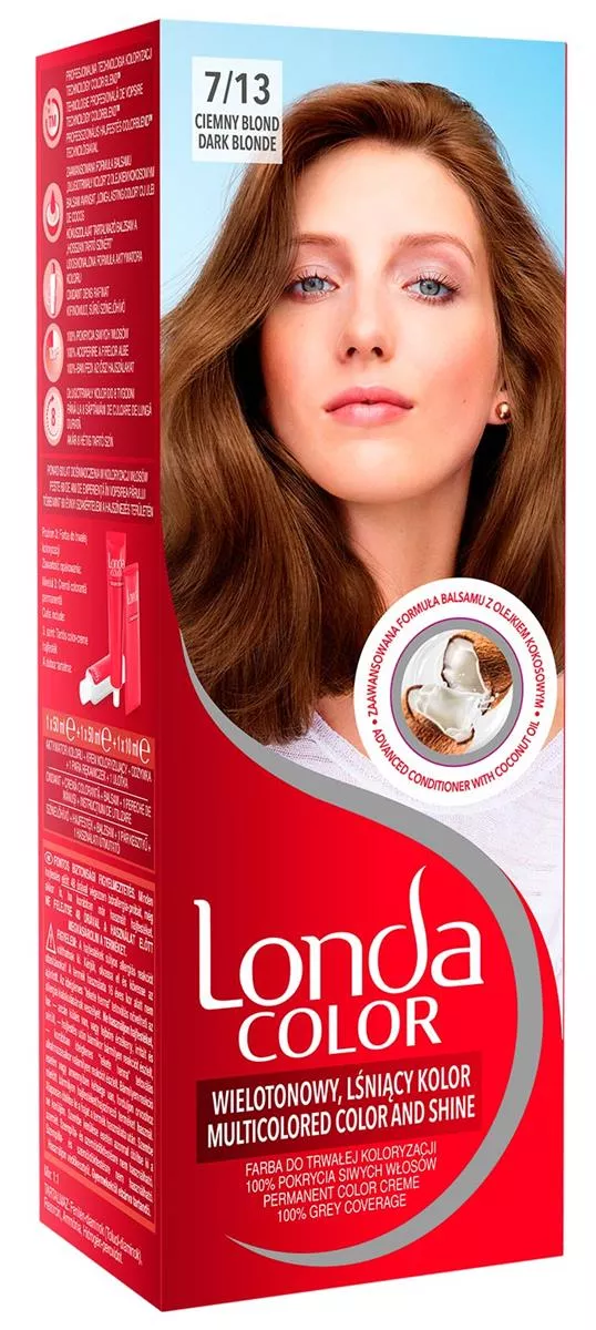Farba do trwałej koloryzacji Londa Color. Technologia Color Blend ™to unikalna, opatentowana technologia która łączy różne, bogate w pigmenty tony jednego koloru nadając Twoim włosom wielotonowy, pełen blasku kolor. Dodatkowo zaawansowany balsam „długotrwały kolor” z olejkiem kokosowym odżywia włosy i tworzy barierę ochronną zapobiegającą wypłukiwaniu koloru. Jego ulepszona formuła zawiera aminokwas histydynę, który pozwala zneutralizować szkodliwe działanie składników chemicznych na włosy dzięki czemu włosy są lśniące, miękkie i gładkie w dotyku. Londa Color gwarantuje 100% pokrycia siwych włosów oraz długotrwały kolor aż do 8 tygodni. Opakowanie zawiera: • krem koloryzujący 50 ml, • emulsję aktywującą 50 ml, • odżywkę 10 ml, • parę rękawiczek, • instrukcję użycia.