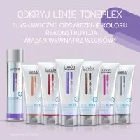 Maska koloryzująca do włosów Londa Toneplex doskonale odświeża kolor, tonuje włosy i nadaje im ciekawy, pastelowy odcień. Maska nie zawiera nadtlenku wodoru, amoniaku, silikonów, więc jest bezpieczna dla włosów. Kosmetyk zapobiega blaknięciu koloru i uszkodzeniom włosów spowodowanych przez słońce, chlor i słoną wodę, ciepło oraz gorącą wodę. Formuła Color zapewnia wysoką jakość kolorów. Z kolei technologia Pro-Plex z kwasem maleinowym wzmacnia wewnętrzną strukturę włosów. Kolor staje się natychmiast intensywniejszy, a do tego kosmetyk rekonstruuje wiązania węwnątrz włosów.