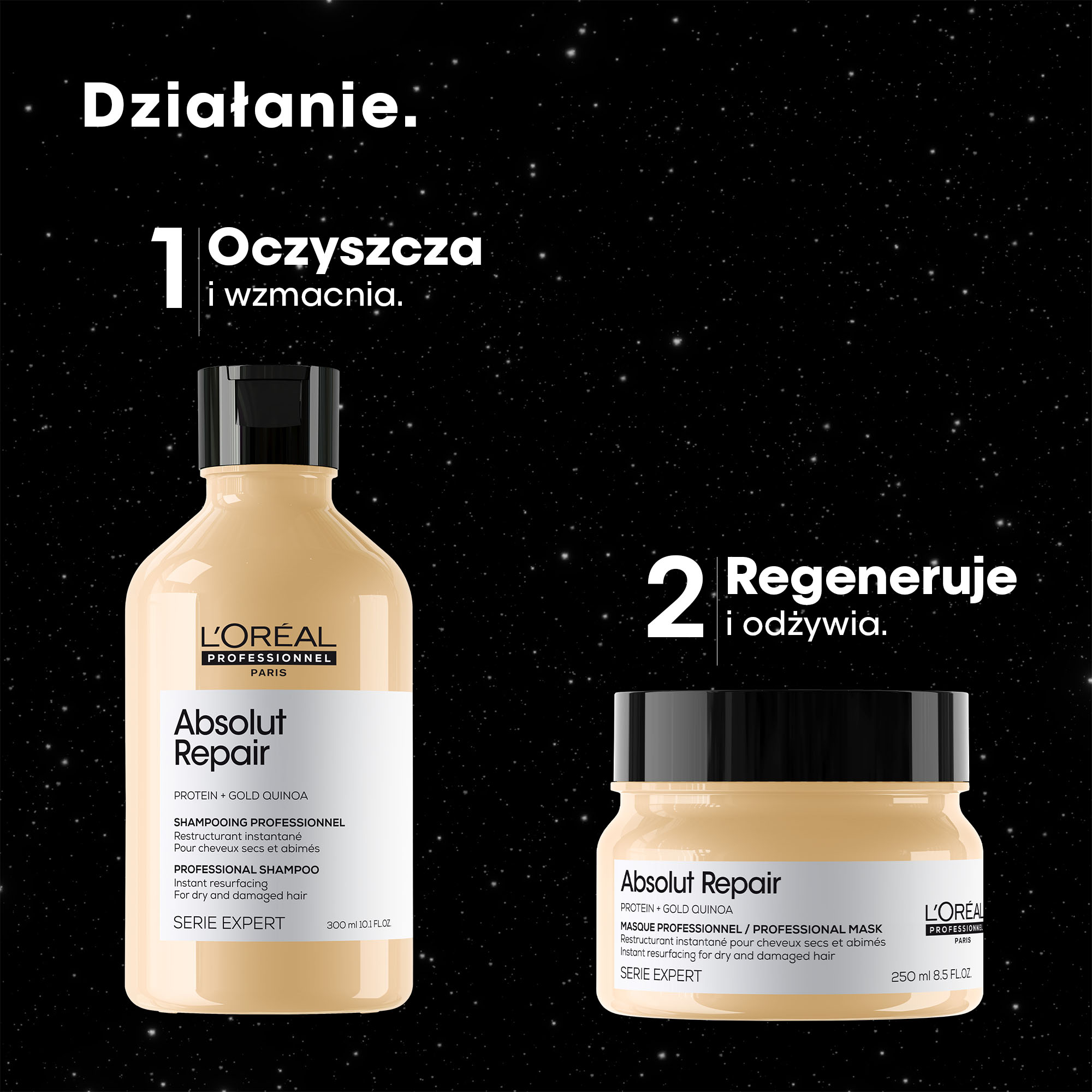 - Szampon Absolut Repair 300 ml – natychmiastowa transformacja włosów, zwiększenie miękkości i odporności1